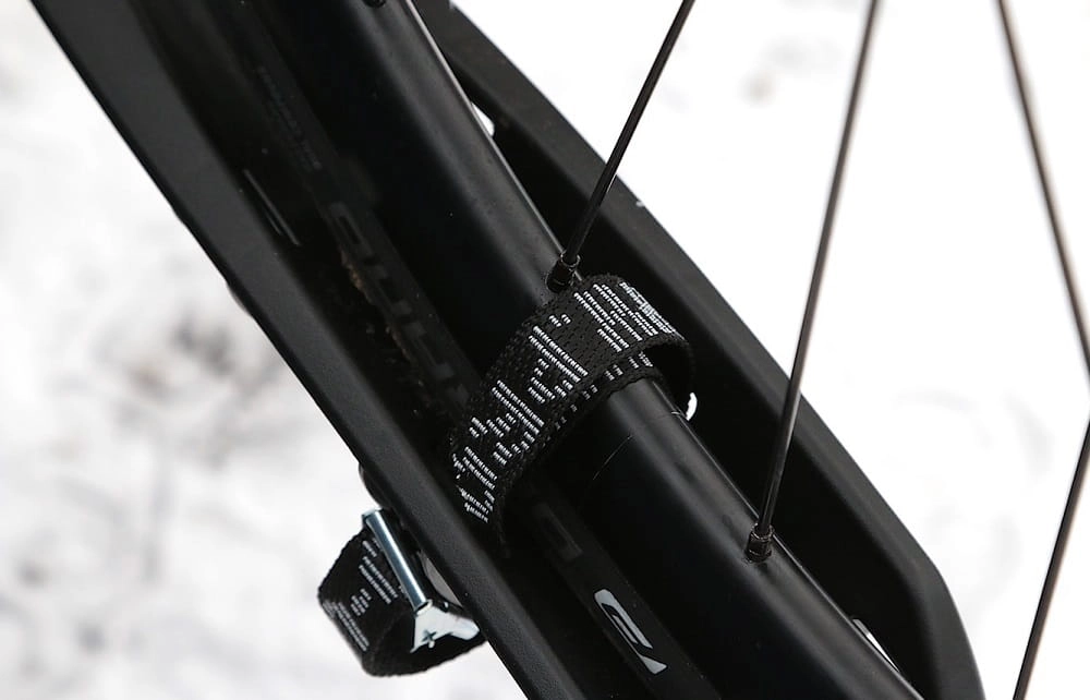 - Regulowane wsporniki do mocowania ramy roweru, zakończone mocnym paskiem.