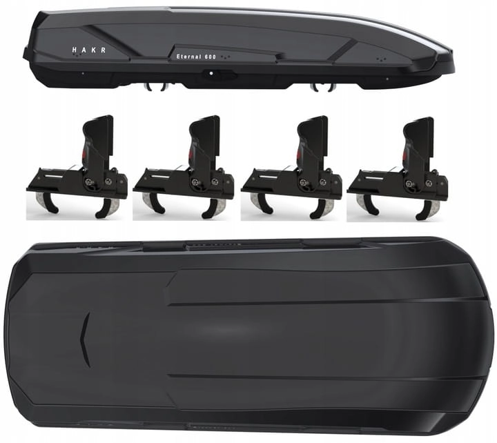 Wysokiej jakości box dachowy Hakr Eternal 600 jest bardzo prosty w obsłudze, a dzięki wytrzymałej konstrukcji wykonanej z tworzywa ABS zachowuje trwałość na lata. Standardowym wyposażeniem boxa jest szybki zacisk, dzięki któremu montaż jest szybki i łatwy bez konieczności użycia dodatkowych narzędzi - max rozstaw belek zewnętrzne 950 mm i min wewnętrzne 580 mm.