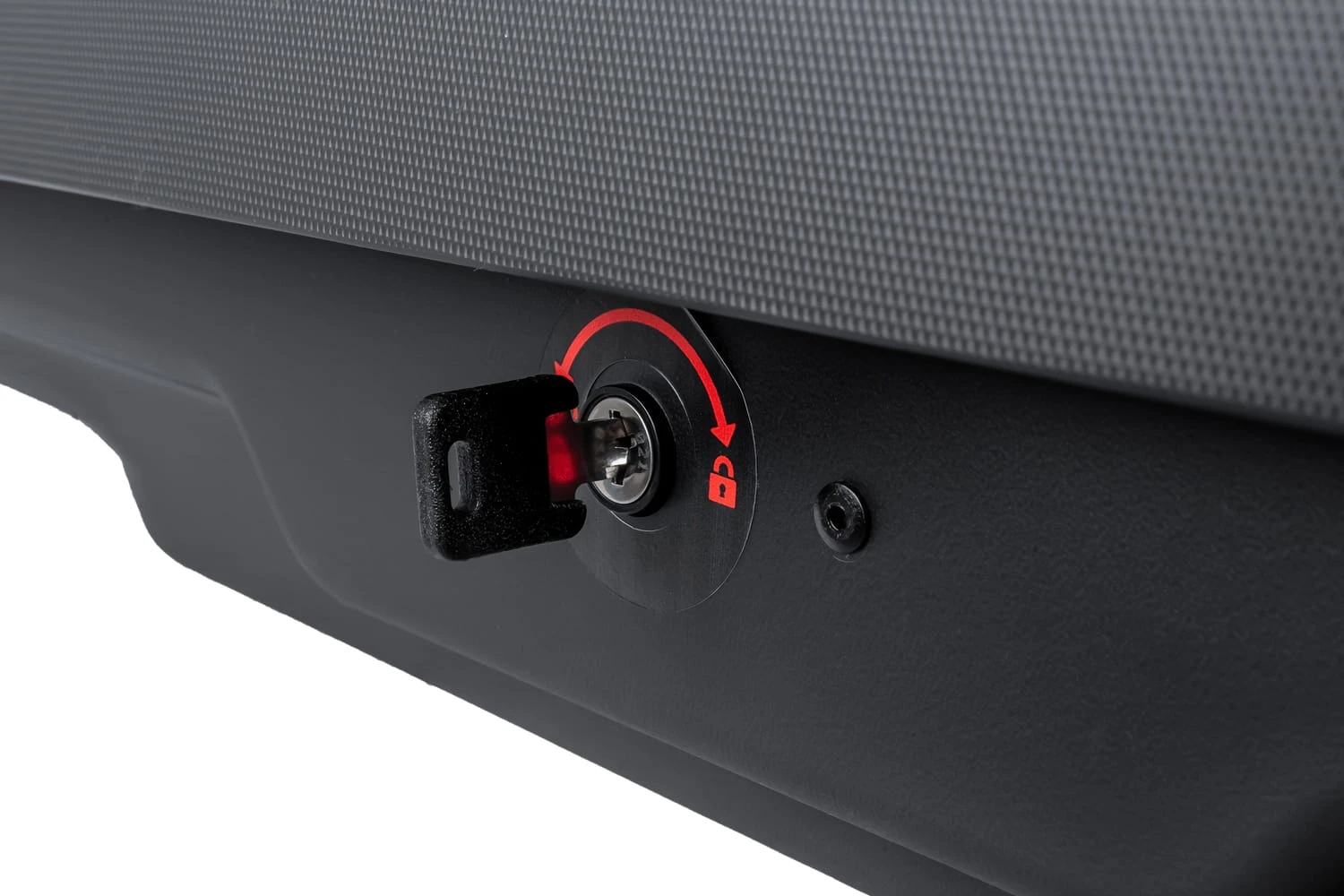 Centralny trzypunktowy zamek gwarantuje wysoki poziom bezpieczeństwa przewożonych rzeczy. Dodatkowym środkiem bezpieczeństwa jest również wbudowany system pozwalający na wyciągnięcie klucza z zamka tylko w przypadku poprawnego zamknięcia pokrywy.