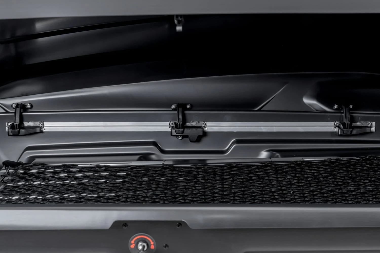Kształt boxa dachowego został zaprojektowany tak aby umożliwiał przewóz jak największej ilości bagaży przy wymiarach wewnętrznych (długość 150 cm x wysokość 32 cm x szerokość 73 cm).