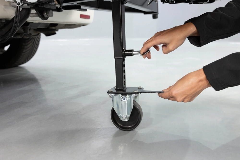 - Kółka transportowe i uchwyty – wygodne przemieszczanie boxa poza pojazdem