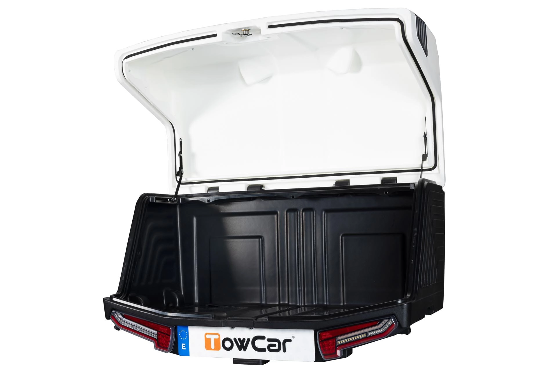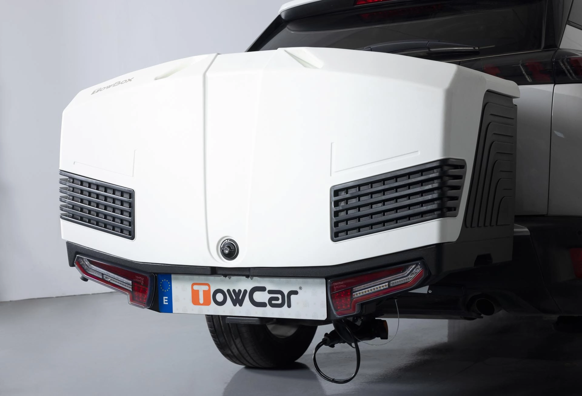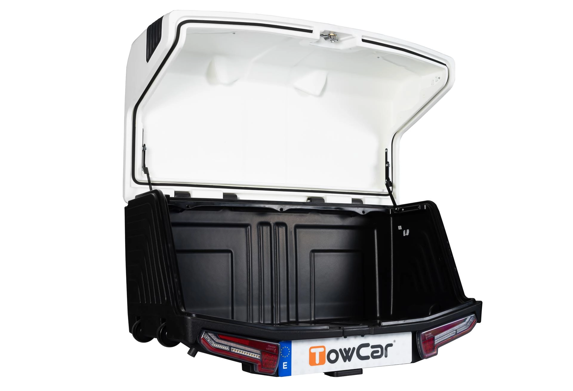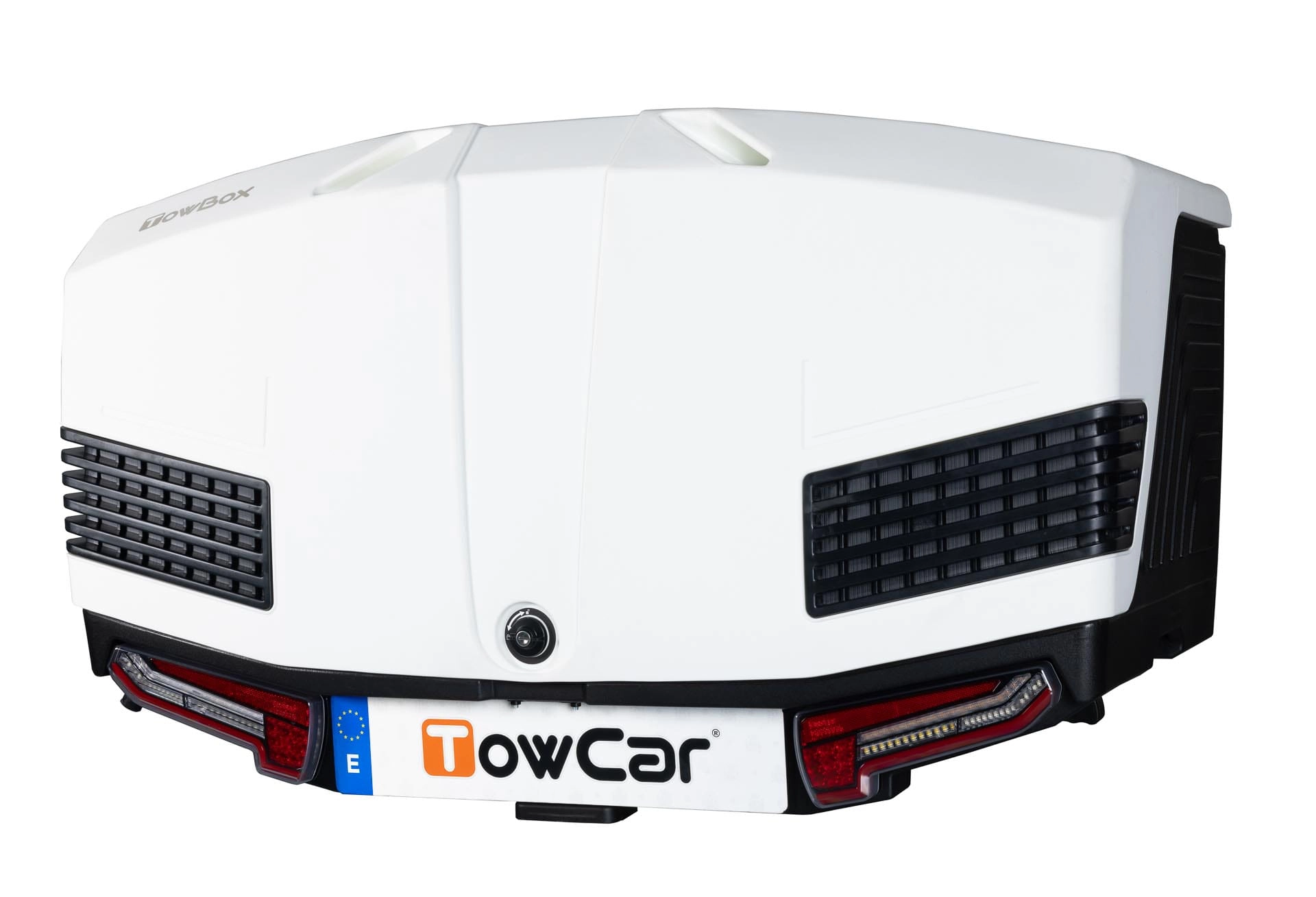 Specjalna konstrukcja ramy pozwala na regulację odległości pomiędzy boxem a nadwoziem, dzięki czemu można go używać także w samochodach z kołem zapasowym na tylnej klapie. Towbox ma wbudowane kółka umożliwiające bezproblemowe przemieszczanie (nie trzeba go podnosić) oraz montaż i demontaż, które bez problemu może wykonać jedna osoba. Towbox posiada prosty i wygodny system mocowania do haka (za pomocą dźwigni), a funkcję odsuwania uruchamia się pedałem umieszczonym w przedniej części boxa.