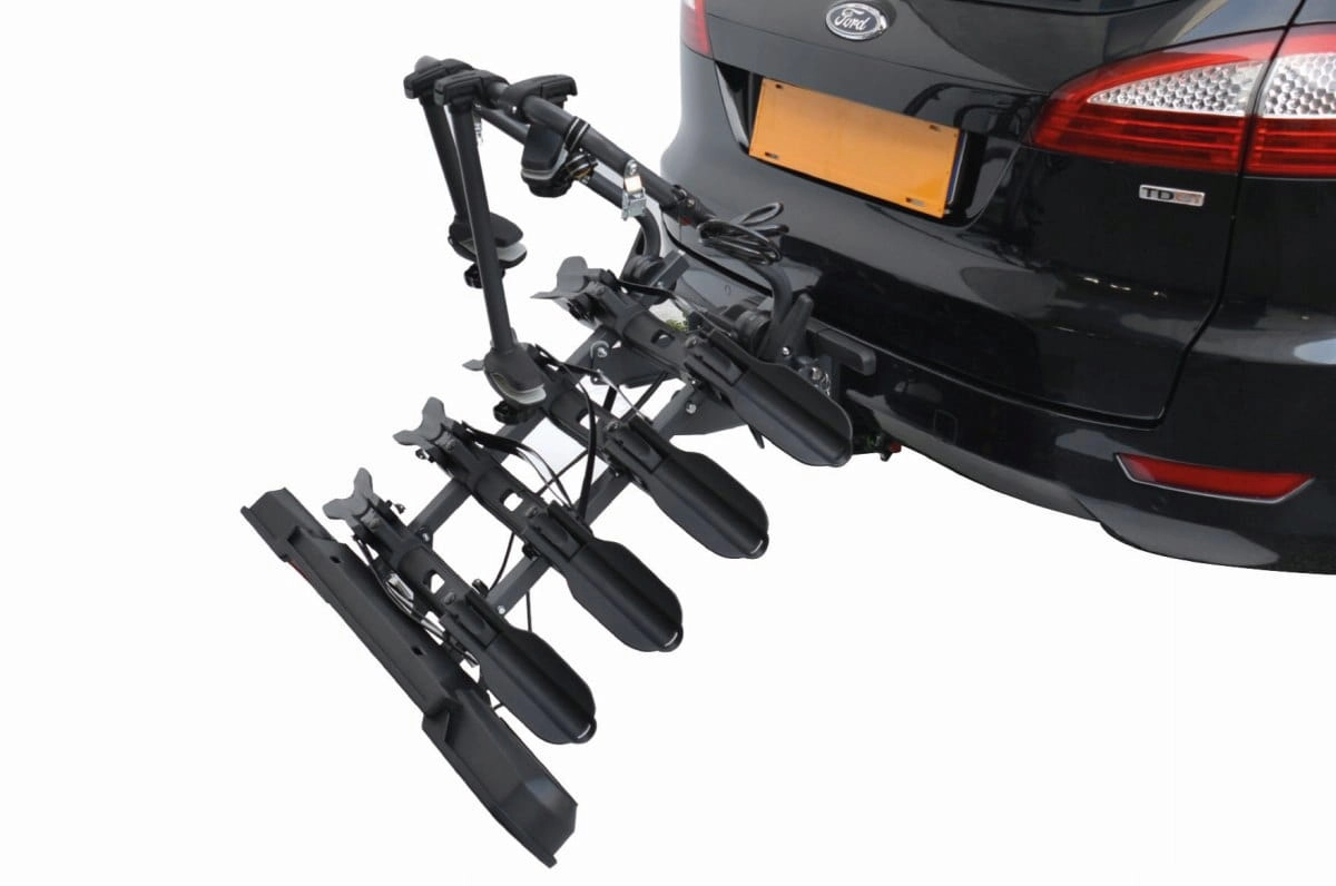 Składany bagażnik Peruzzo COMO 4 Pure Instinct do przewozu 4 rowerów na haku holowniczym. Posiada funkcję odchylania, łatwy system montażu oraz zamknięcie antykradzieżowe.