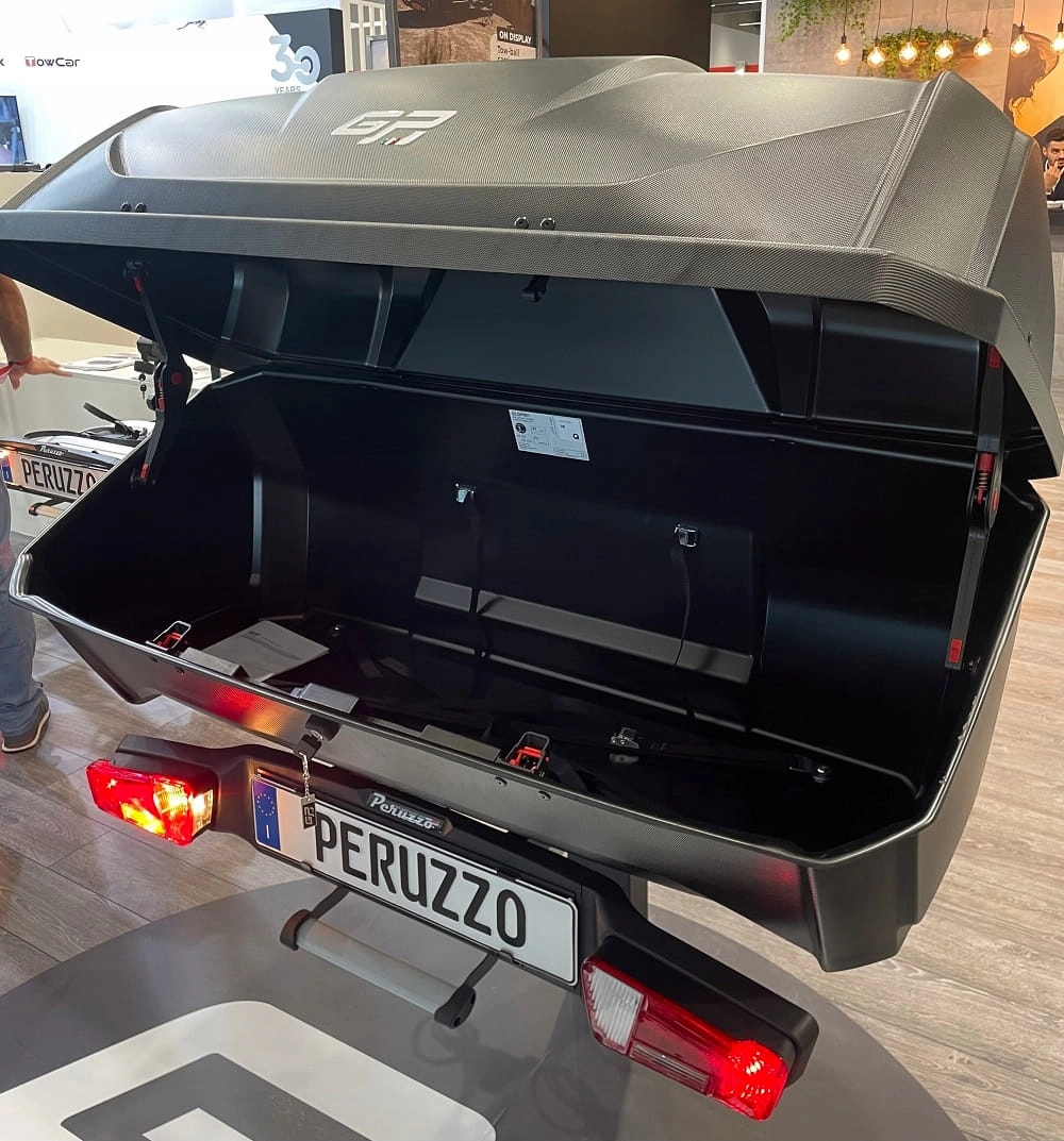Oczywiście, aby ułatwić dostęp do bagażnika pojazdu Peruzzo Como 4 posiada możliwość odchylania. Bagażnik odchyla się pod dużym kątem. Oświetlenie bagażnika jest zasilane z instalacji 13 PIN, posiada więc wymagane od pewnego czasu światło cofania.