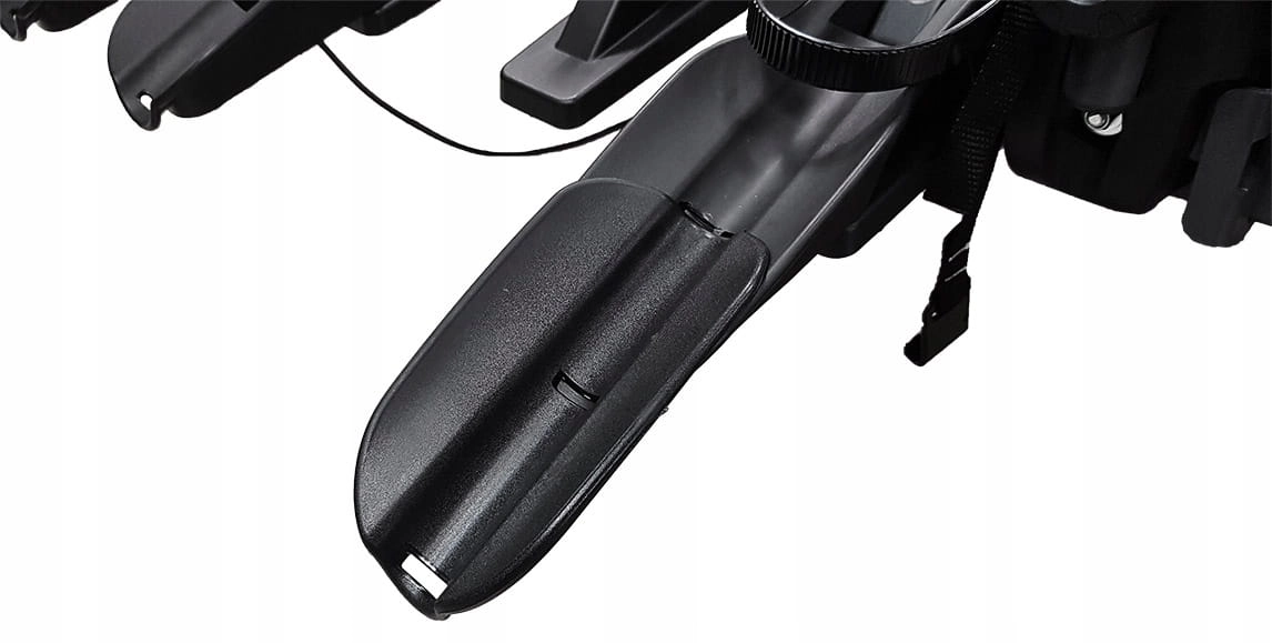 W zestawie z bagażnikiem znajdują się także 2 plastikowe adaptery przedłużające podstawki na koła, które okażą się niezbędne do zamocowania 1 roweru posiadającego szeroki rozstaw kół.