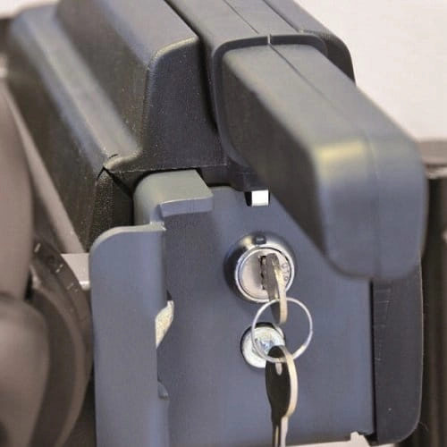 W zestawie znajduje się stelaż do zamontowania platformy oraz pasy do zabezpieczenia bagażu. Box zabezpieczony jest zamkiem znajdującym się w jego centralnej części.